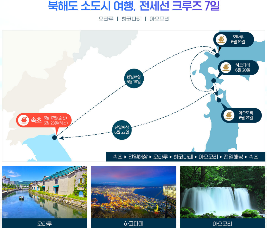 크루즈 여행지 내용들 ( 부산 - 속초 - 블라디보스토크 - 일본 - 부산 )