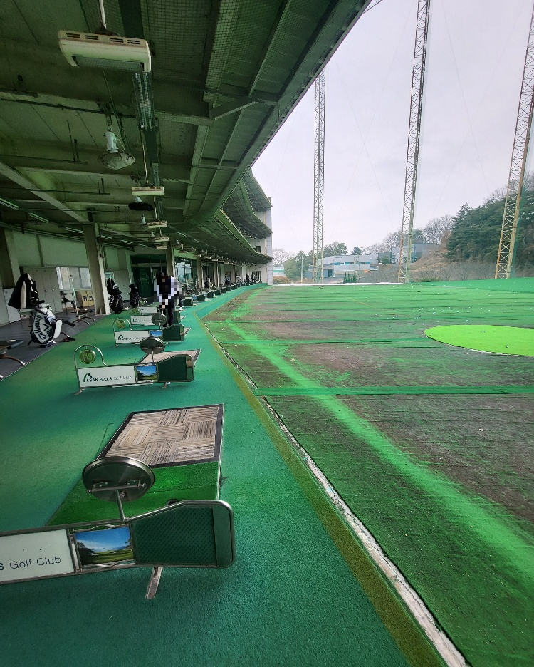 아산힐스골프클럽의 장점은 넓은 주차장과 1,2 층으로 구성되어 충분한 타석이 준비되어 있습니다. 또한 오래되었지만 시설도 깔끔하게 관리되고 있어서 연습하기에 부족함이 전혀 없습니다. 또한 비거리를 충분히 느낄 수 있도록 넓고 길게 만들어져 있어서 시원하게 장타(비거리) 연습이 가능한 곳입니다.